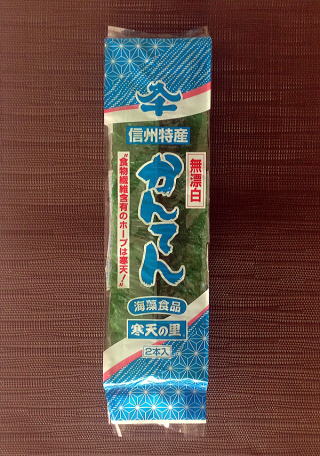 信州特産寒天といえば棒寒天。 蓼科山麓のおいしい水ときれいな空気で 昔ながらの伝統製法で作られました。 天草も多種類を配合しており、お客様が 使いやすく、安心な天草を使用しています。 国産で無添加・無漂白のため、安心と安全を お届けいたします。 お祝い事・イベント等にご使用ください。 原材料名 海草(天草・オゴ草) 着色料(青色1号、黄色4号) 栄養分析表示(1本あたり標準7.5g) (長野県食品衛生試験研究所調べ) ・熱量 0kcal ・タンパク質 0.1g ・脂質 0g ・糖質 0g ・食物繊維 5.6g ・ナトリウム 4mg |